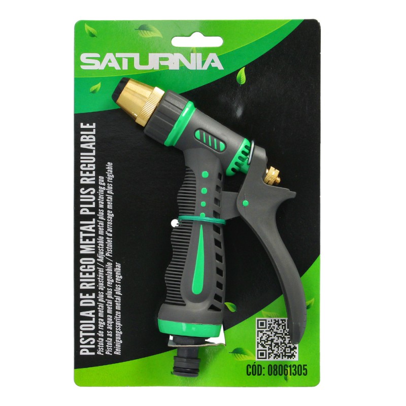 Pistola riego manguera \"metal plus\" regulable - Regulable- Conector macho.- Mango ergonomico.
