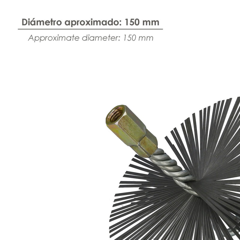 - Con un diámetro aproximado de 150 mm, este cepillo deshollinador es compatible con una variedad de kits para estufas y chimeneas, lo que lo hace versátil y práctico.