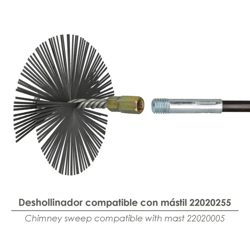 - Su uso es válido para diferentes referencias como el Kit cepillo deshollinador tubo estufa (22020655), el Cepillo limpiador chimenea (22020650) y el Mastil deshollinador de 5 tramos de 140 cm (22020635), lo que lo convierte en un complemento ideal para tu kit de mantenimiento.