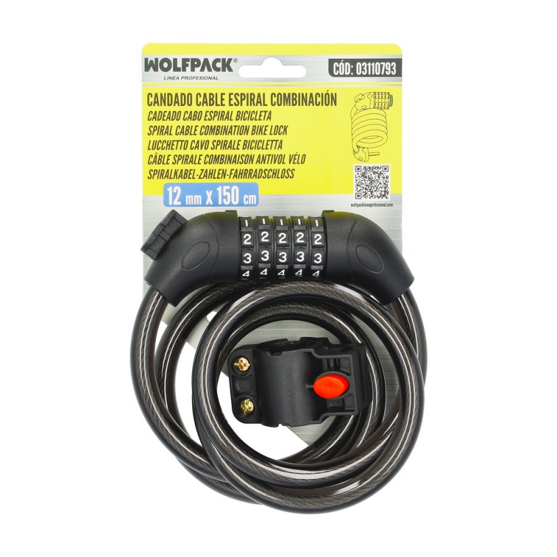 Cable Bicicleta Espiral Con Combinación. 12 mm. x 120 cm.