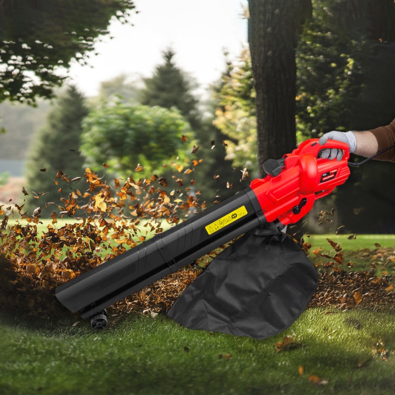 - Su funcionalidad 3 en 1 te permite utilizarlo como aspirador, soplador o triturador, con una relación de trituración de 10:1 que reduce de manera significativa el volumen de hojas aspiradas. Con una longitud de cable de 35 cm y un peso de 2,70 kg, este aspirador soplador es ligero y fácil de manejar.
