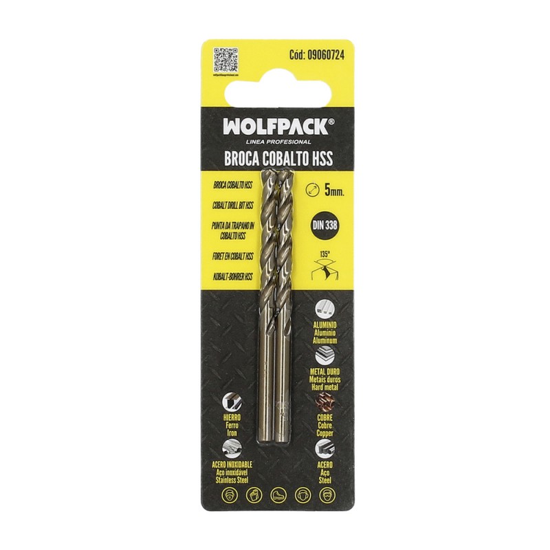 Broca Wolfpack Cobalto Hss Cilindrica 5,00 mm. Blister 2 Unidades.