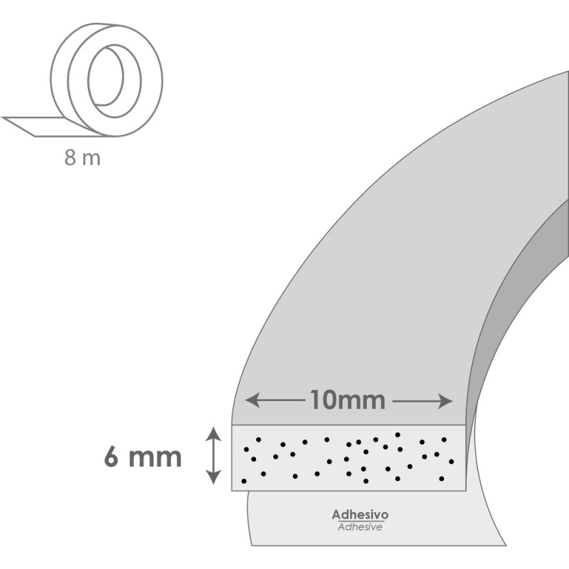 - De 8 metros de largo y 10 mm de ancho, ideal para garantizar un sellado perfecto en tus ventanas.