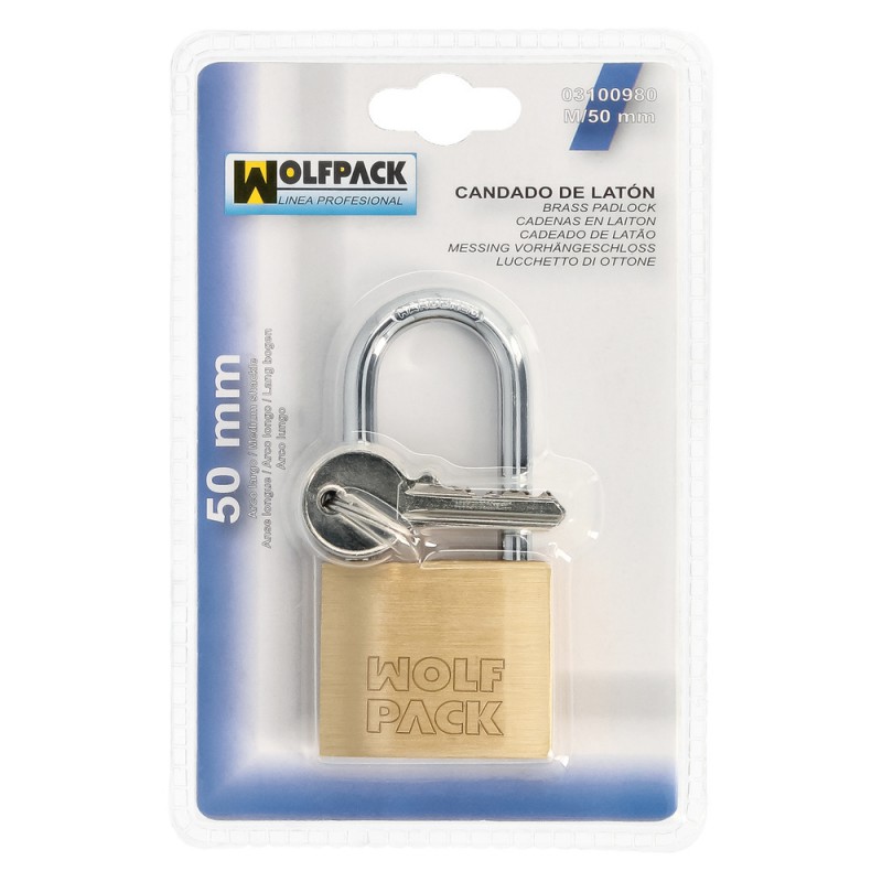 Candado Laton Arco Largo 50 mm. Blister 1 pieza Heavy Duty