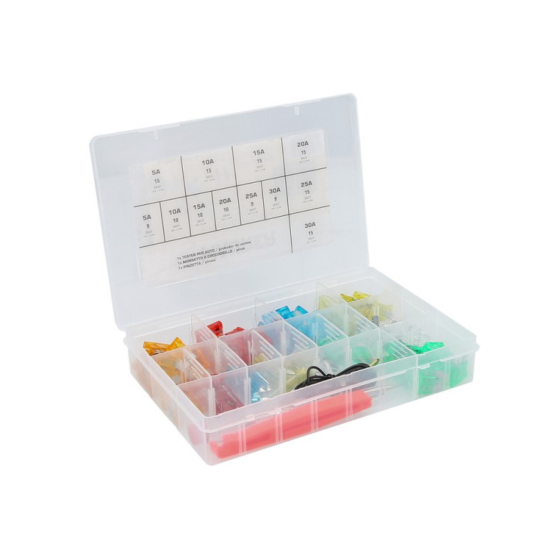 - El maletin incluye 147 fusibles, 1 destornillador buscapolos, 1 pinzas y 1 extractor de fusibles.