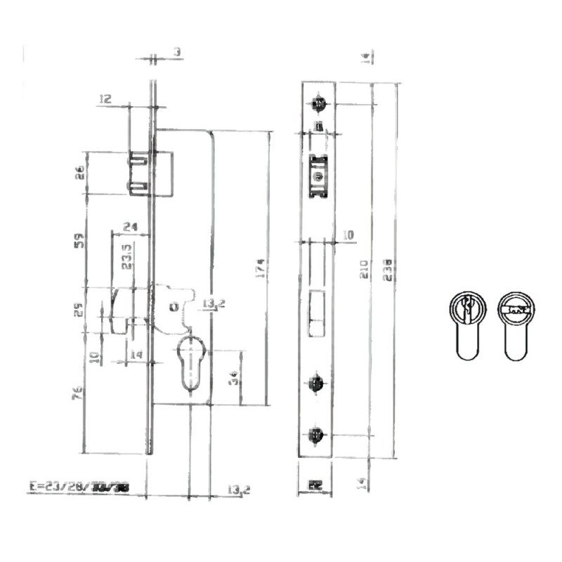 Cerradura Iseo 741640-28 mm. frente Cromo Con Rodillo