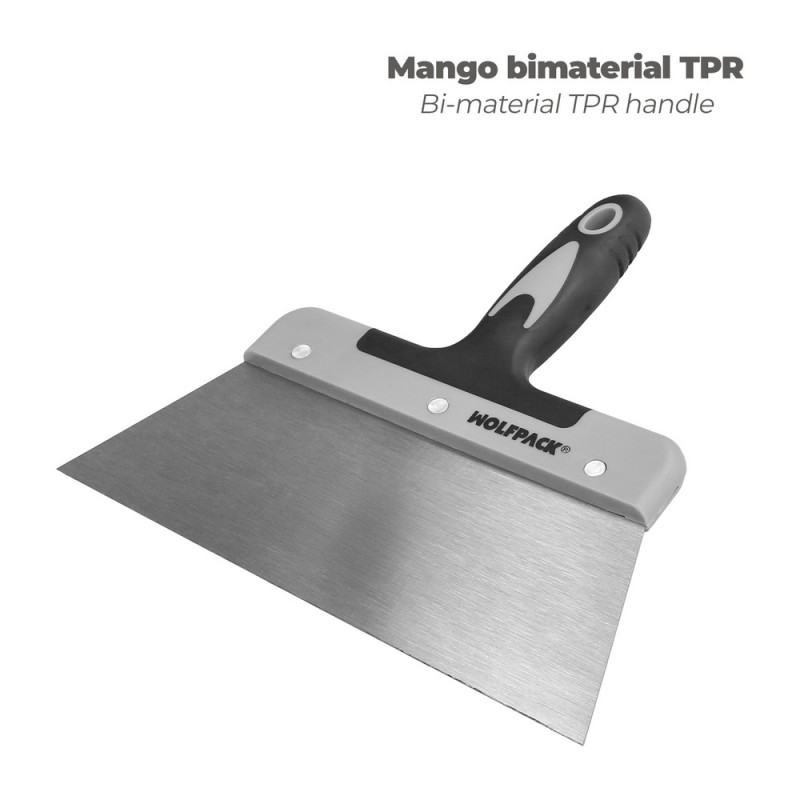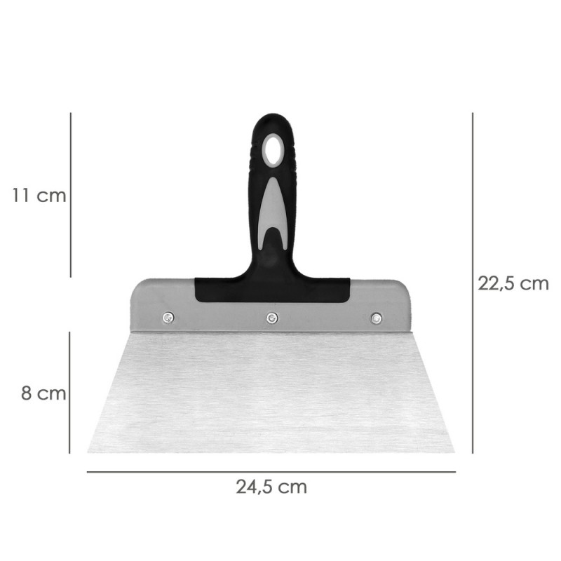 - Espatula fabricada en acero de 25 cm. y mango ergonomico TPR.