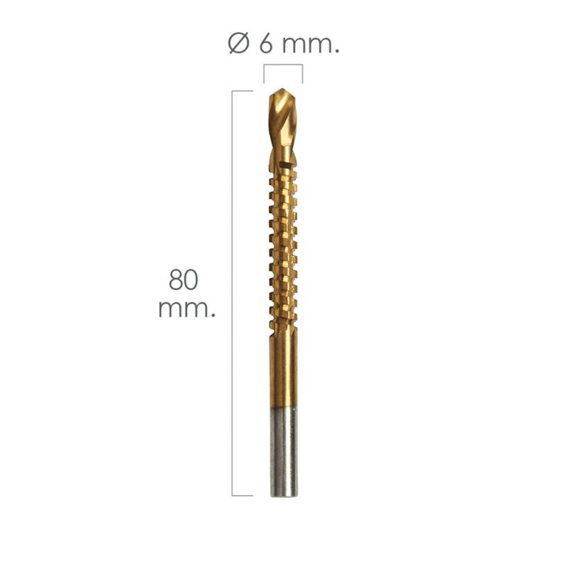 - Compatible con taladros y fresadoras que acepten vástagos de Ø 6 mm.