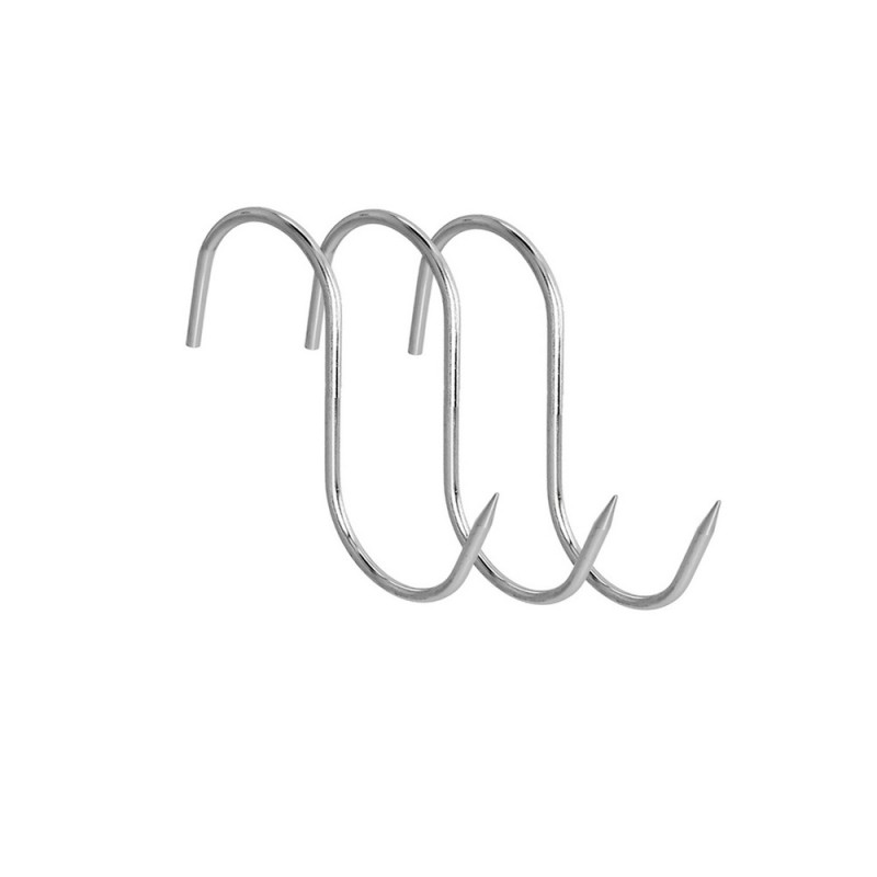 - Forma "S" con punta puntiaguda para facilitar el clavado en productos cárnicos.