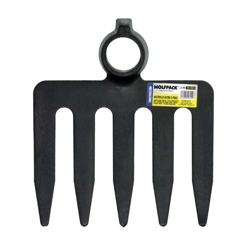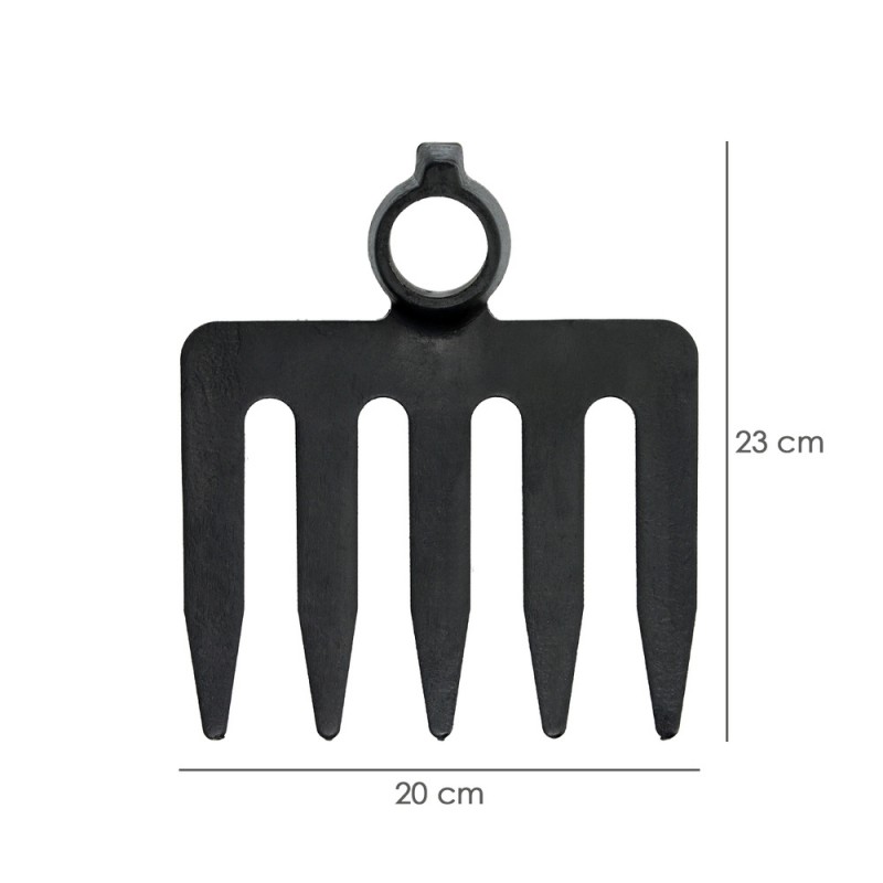 - Rastrillo sin mango de 5 púas fabricado en acero de alta calidad.