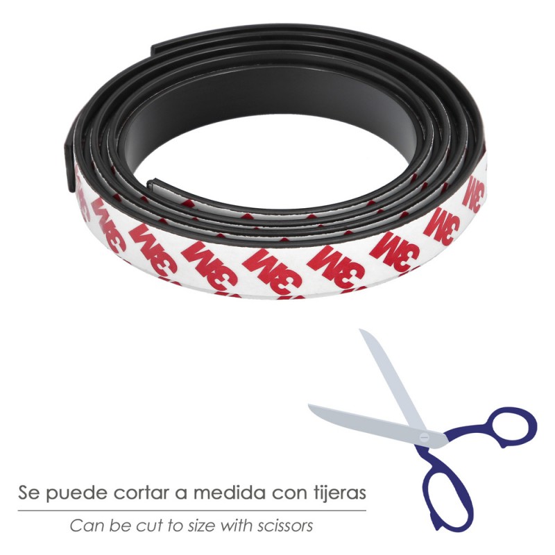 - Cinta magnética A+B de 15 mm de ancho y 1,3 mm de grosor, ideal para la fijación de mosquiteras. Apta también para carteles ligeros, tiras LED y mandos a distancia.