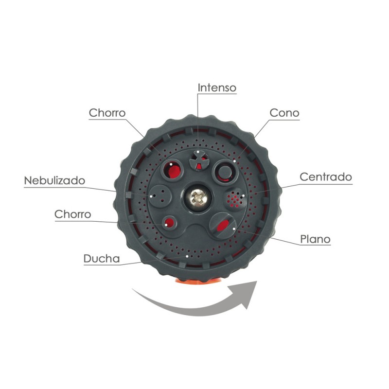 - El set incluye una pistola de agua con 8 posiciones de riego para adaptarse a tus necesidades.