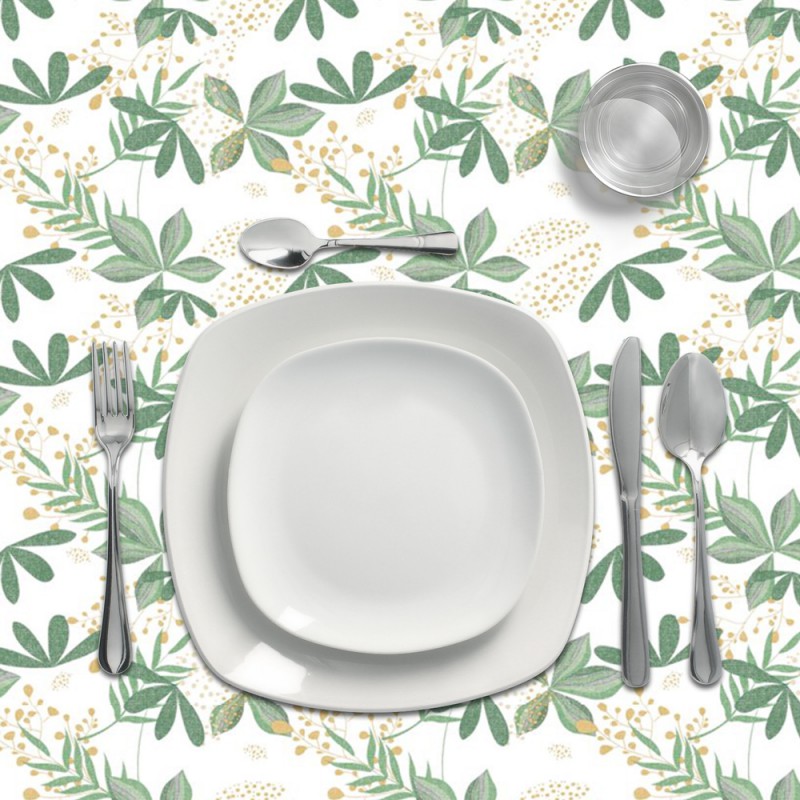 - Mantel hule estampado en comotivos florales. Diseño moderno y elegante para cualquier ocasión.