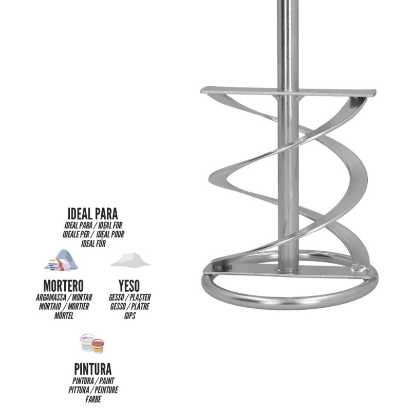 - Artículo también conocido como varilla mezcladora, mezclador mortero, batidor pintura, mezclador cola, varilla pintura, mezclador pintura, mezcladores, mezcladores mortero, batidores, batidoras pintura, varillas mezcladoras, etc.