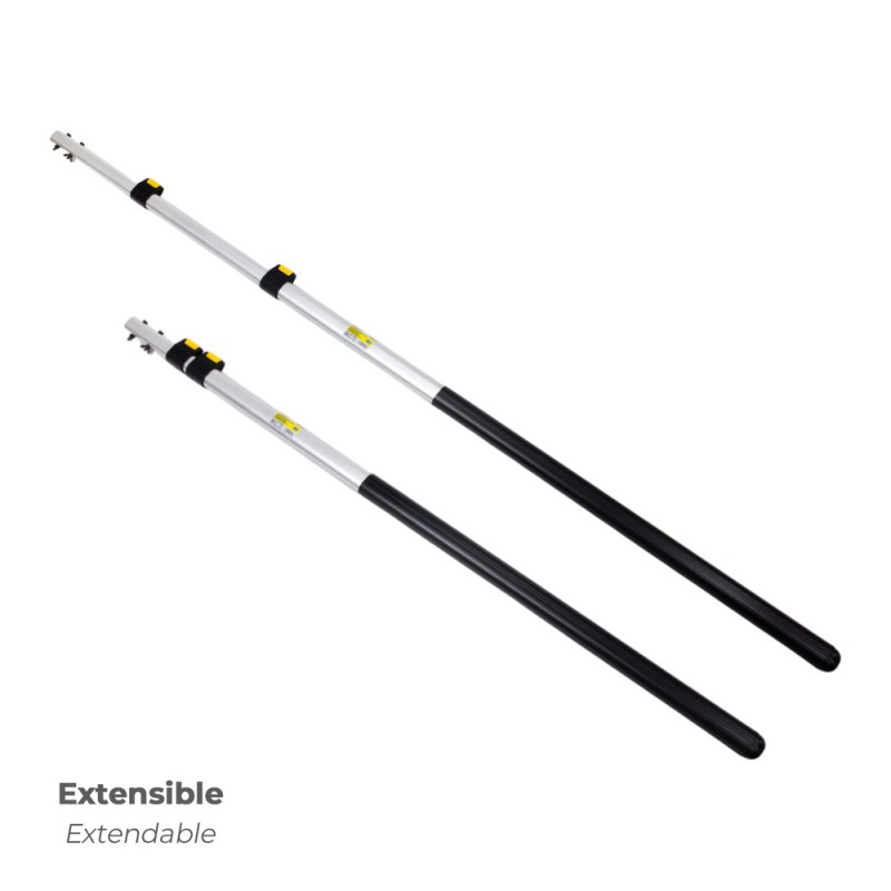 - Con una medida de 1+1+1 metros, esta pértiga es extensible hasta 3 metros, lo que la convierte en un aliado perfecto para tareas en altura que requieran el uso de serruchos.