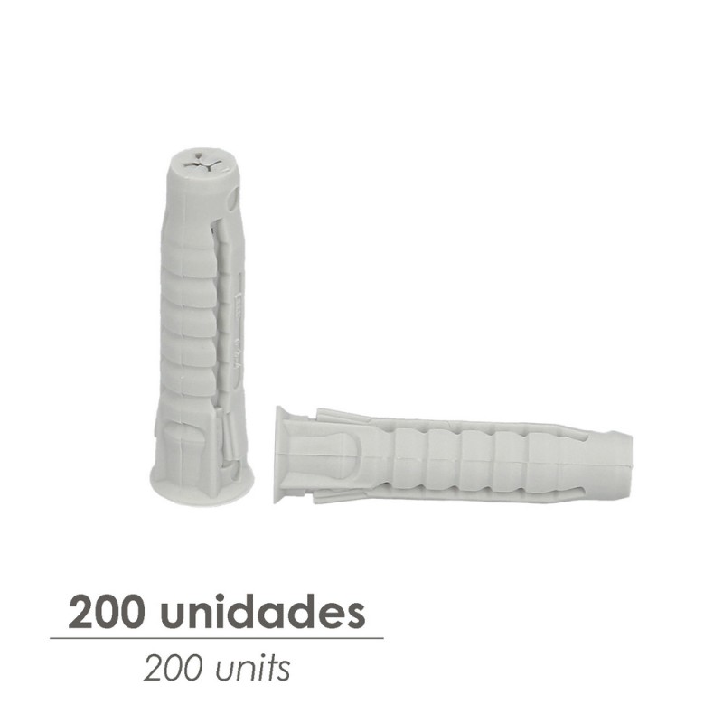- Artículo también conocido como taco 5x25, taco nylon, taco de expansión, taco para pared, tacos fijación ligera, taco PA6, taco expansión cuádruple, taco nylon gris, taco construcción, etc.