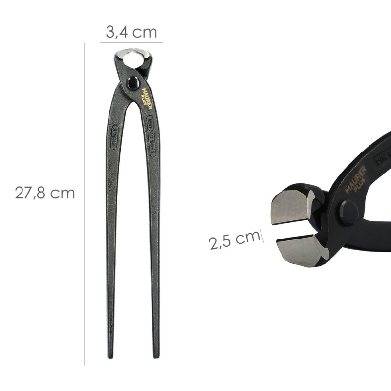 - El filo está pensado para agarre firme de materiales como alambre, barras pequeñas, pernos, clavos, etc. sirve para sujeción y doblado.