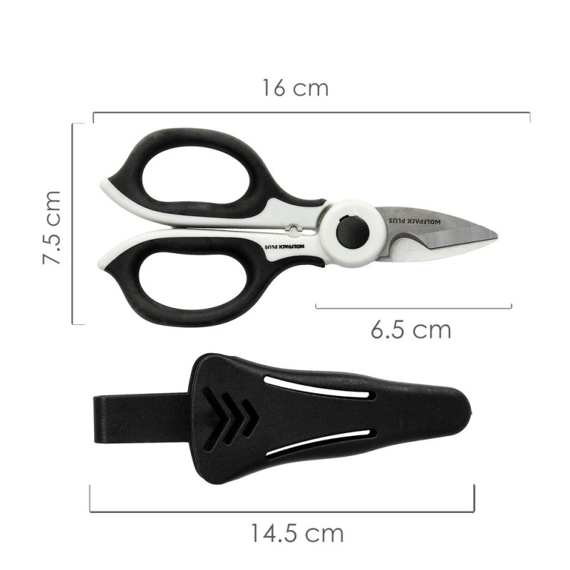 - Muesca en una hoja de la tijera para ayudar a pelar y cortar cables.