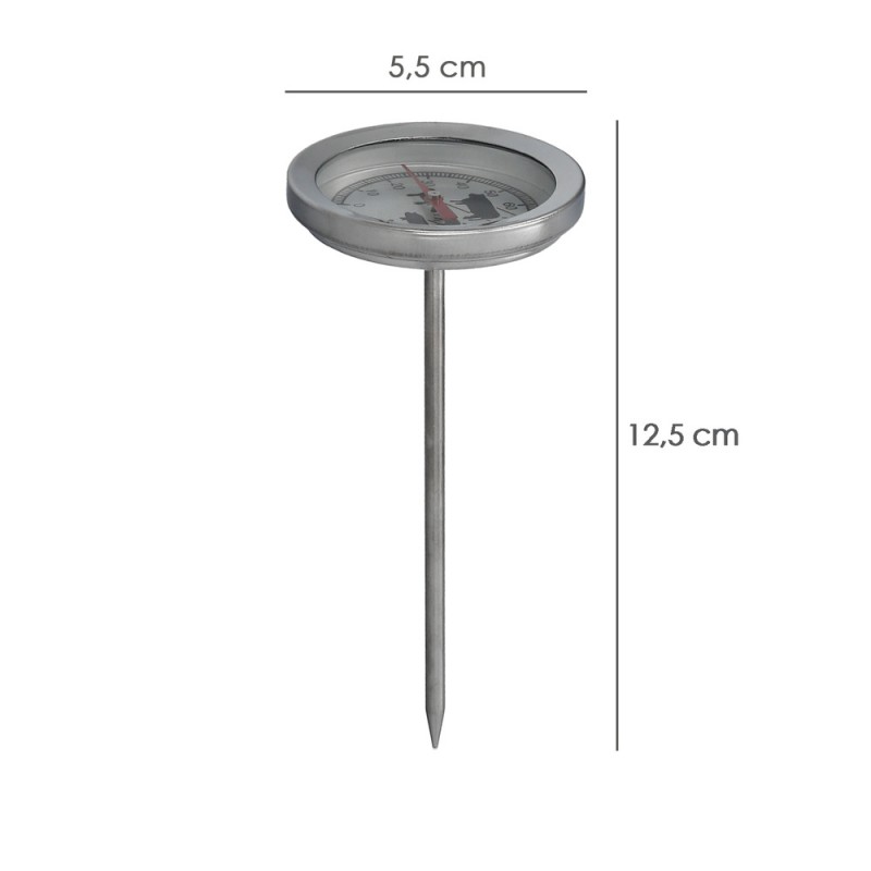 - Este termómetro, resistente hasta los 120ºC, es tu aliado en la cocina gracias a su fabricación en acero inoxidable de alta calidad.